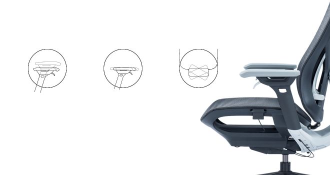 The design is inspired by gliders, using streamlined lines to outline the appearance, seeking a balance between mechanical structure and geometric aesthetics. The design revolves around the concept of "autonomous response". The tilt of the backrest drives the seat to automatically slide forward, moving the seat's center of gravity forward and solving the hidden danger of the chair turning backward during lunch breaks. The wire-controlled adjustment mechanism located at the armrest allows users to quickly and easily adjust the chair to a suitable state.
