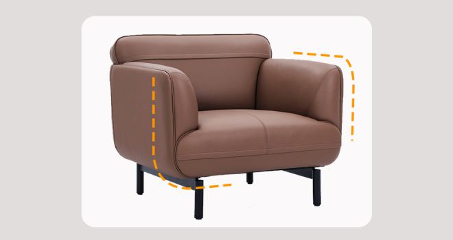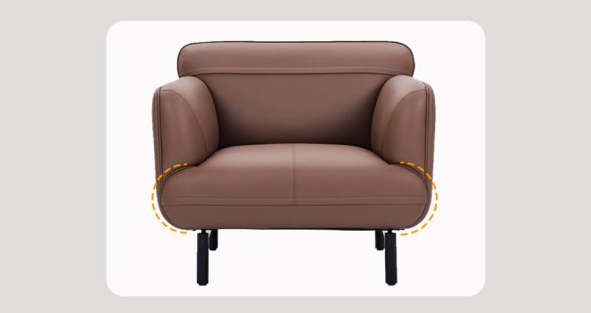 The outer contour is treated with large rounded corners, and the outer side of the armrest is treated with chamfered edges.