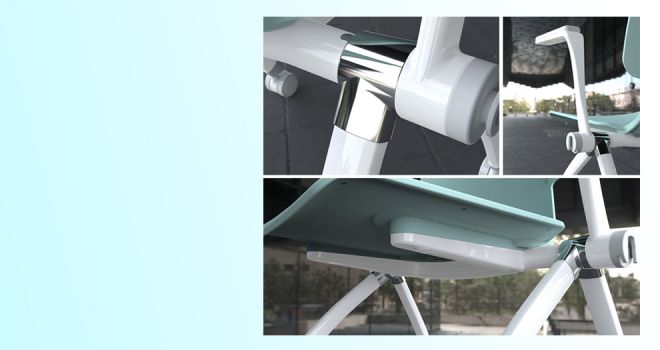 With aluminum alloy armrest coated evenly with hand spray paint. 4 legs fame are made up of Q235 carbon steel pipe and T1.5mm, connected with precise polished aluminum alloy. The prefect representation of modern and elegant design leaving every user a deep impression.